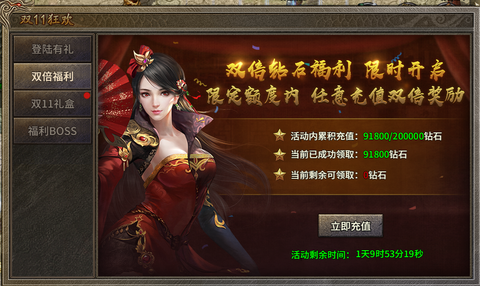 开启区服:11月9日之前以及11月9日开启的区服均开启双11盛典活动。